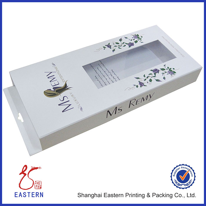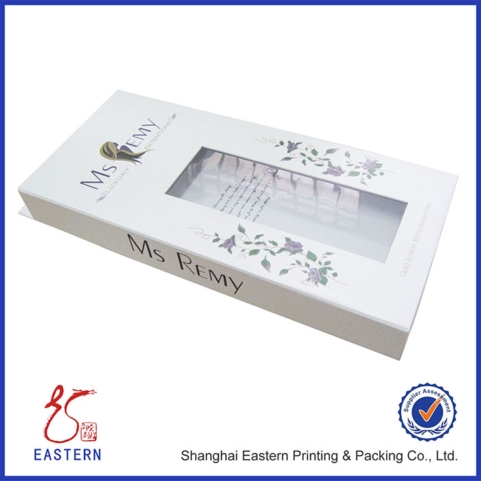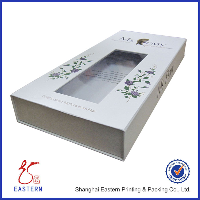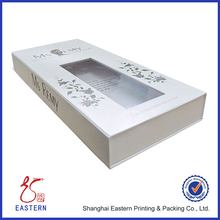 產品簡介:假發天窗包裝盒,盒子輕便,結構美觀,用材綠色環保,輕便易存儲,運輸便捷。可彩色印刷,顏色細膩,印刷效果好。支持燙印,凹凸,UV等后道工藝。