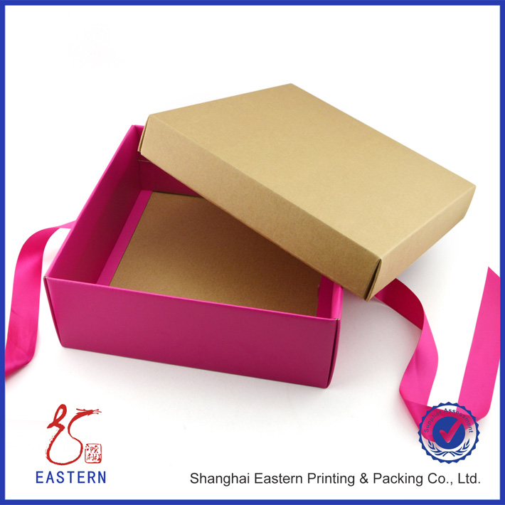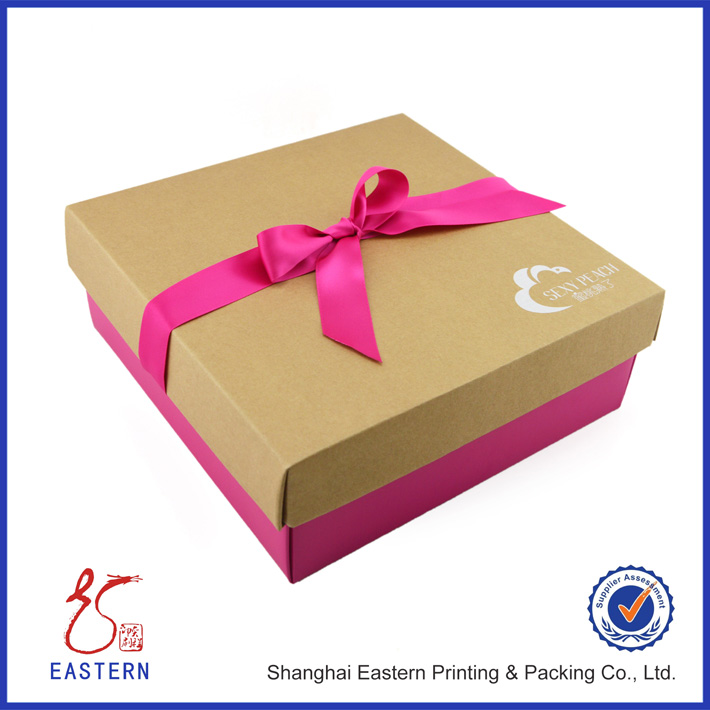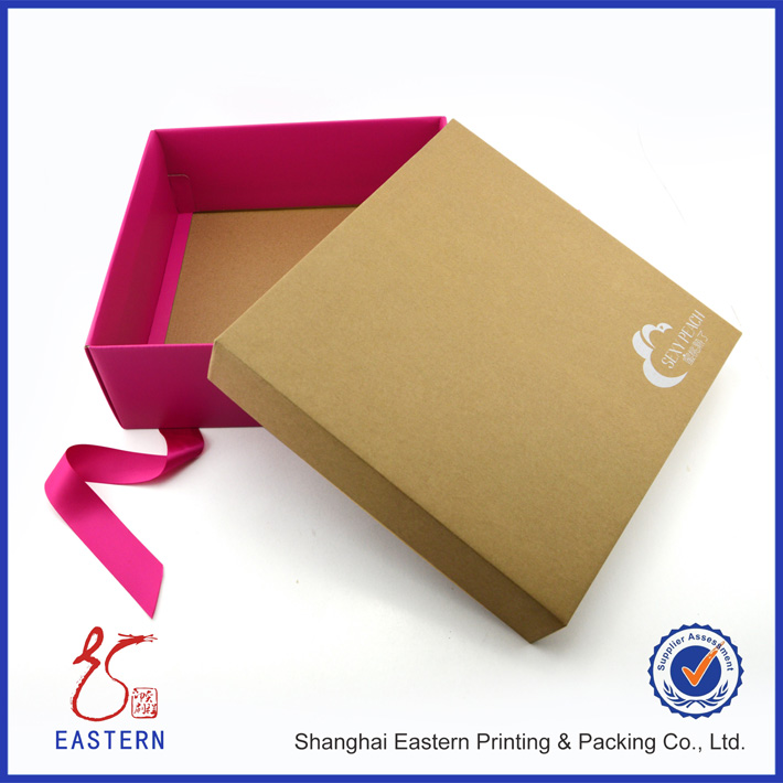 屬性標簽 盒型:天地蓋 材質:蓋,230G牛皮紙裱E瓦楞; 底,210G白卡裱E瓦楞;配絲帶 后道工藝:蓋,絲印;底,覆啞膜