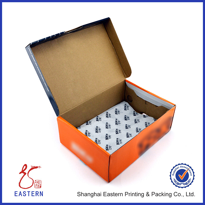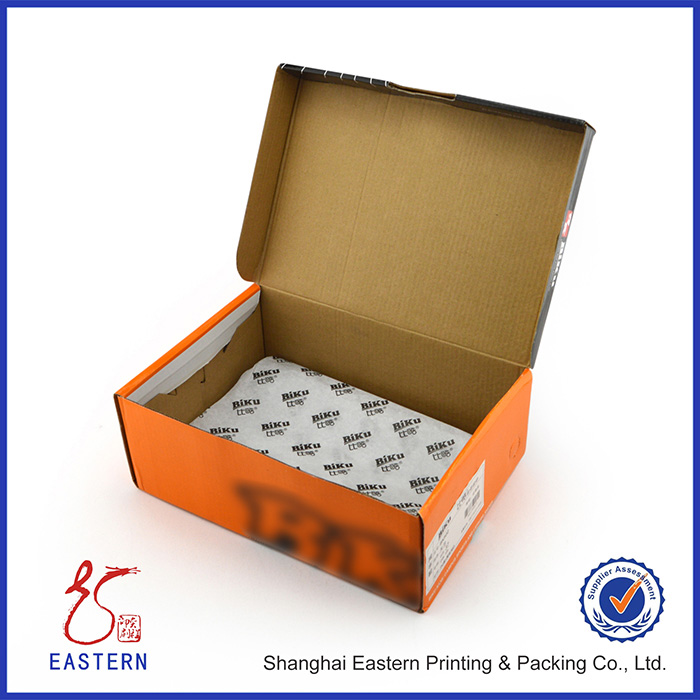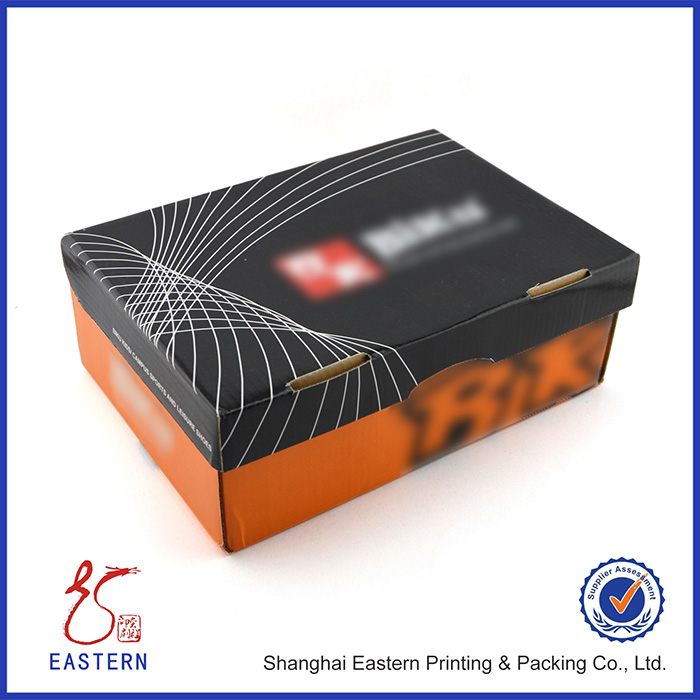 產品簡介:瓦楞紙翻蓋鞋盒,可覆膜、燙印、UV,可折疊,體積小,物流便捷,并且用途廣泛,價格實惠,生產周期短。